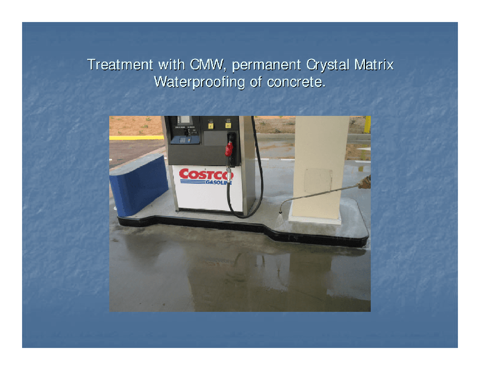CMW-8100 is a water based reactive and non-reactive crystal matrix growth waterproofing product used to treat concrete slabs and other concrete structures to provide permanent waterproofing and strength increases.